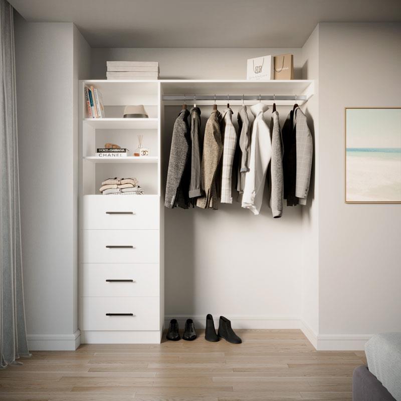 Choose from four on-trend colours and nine handle options. The reversible design adapts seamlessly to your space. With four drawers, adjustable shelves, and spacious long hanging, it's perfect for your long dresses, suits and more. Elevate your storage with Galleria BIR4.9.