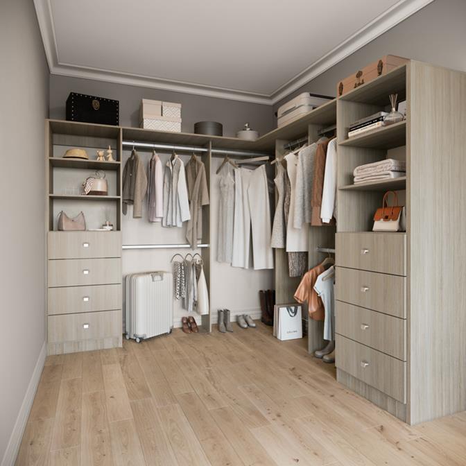 Transform your bedroom into a sanctuary of order and sophistication with Stegbar's L-Shaped Walk-In Wardrobes. Experience the perfect combination of practicality and luxury, tailored just for you.